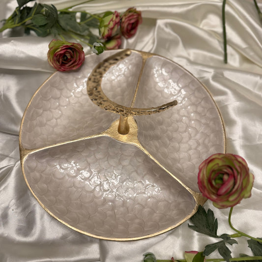 Gold And White Enamelled Crescent 3 Section Round Tray