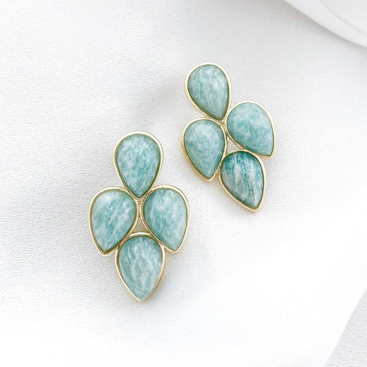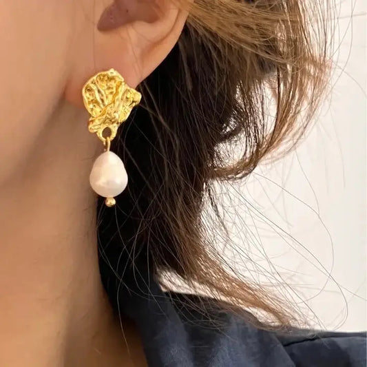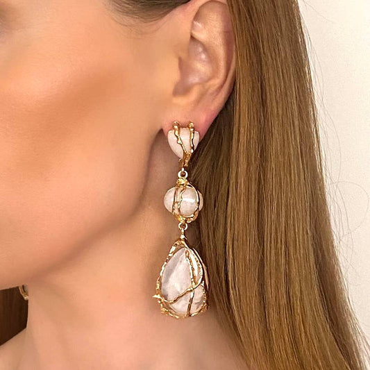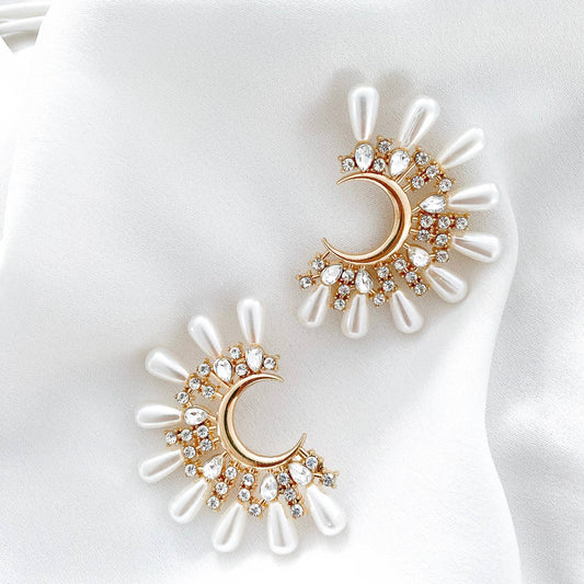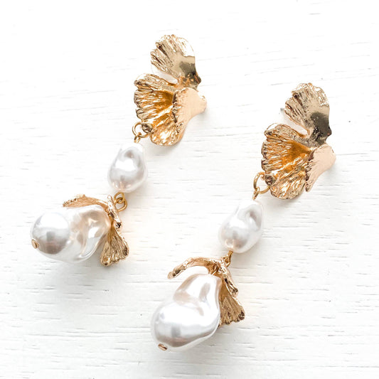 Pearl Bud Fan Leaf Drop Statement Earrings