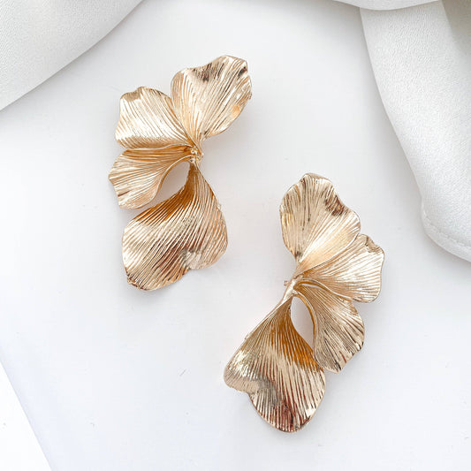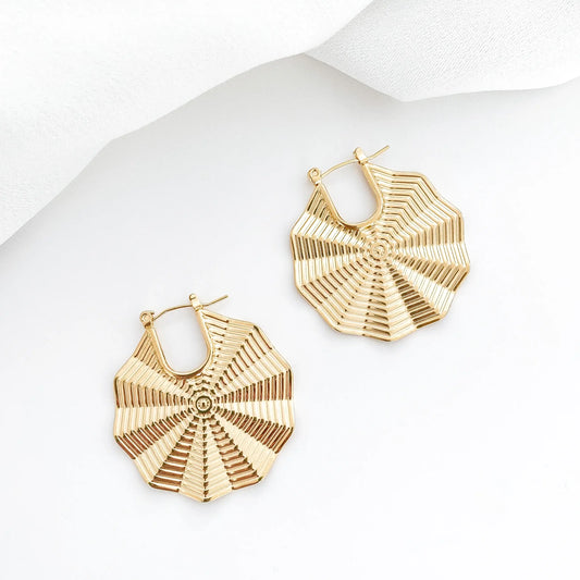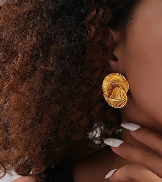 Flexagon - Unique design vintage style wave surface matte gold ear stud