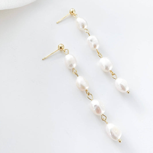 Delicate Drop Pearl Earrings and Necklace set in Gold