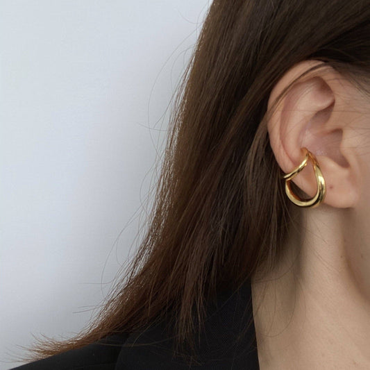 Unique design double line golden n silver ear cuff-one piece: Gold