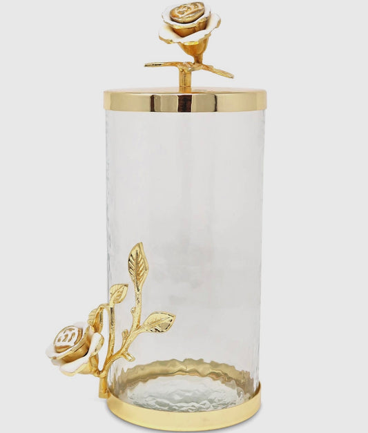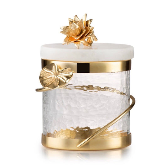 Hammered Glass Canister With Gold Ball Design And Marble Lid