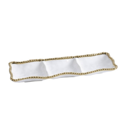 Gold Beaded White Three Section Porcelain Serving Piece