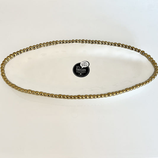 Gold Beaded White Porcelain Oval Platter