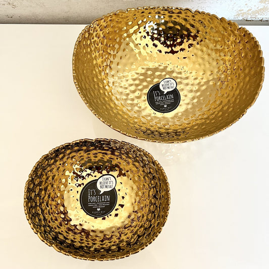 Sold outGold Hammered Oval Porcelain Bowl