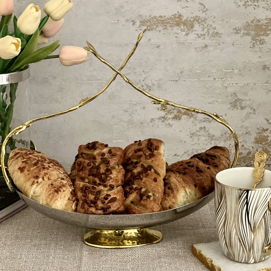 Stainless Steel Basket With Gold Twig Handle
