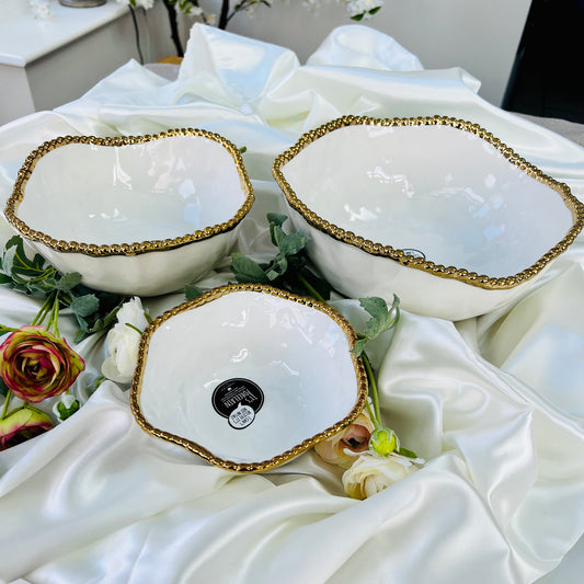 Gold Beaded White Porcelain Salad Bowl